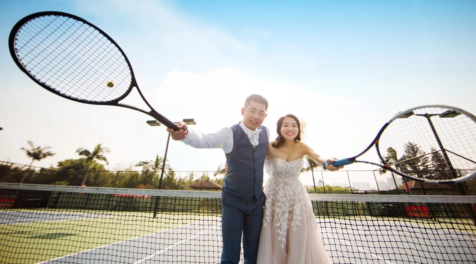 就连婚纱照都离不开网球场