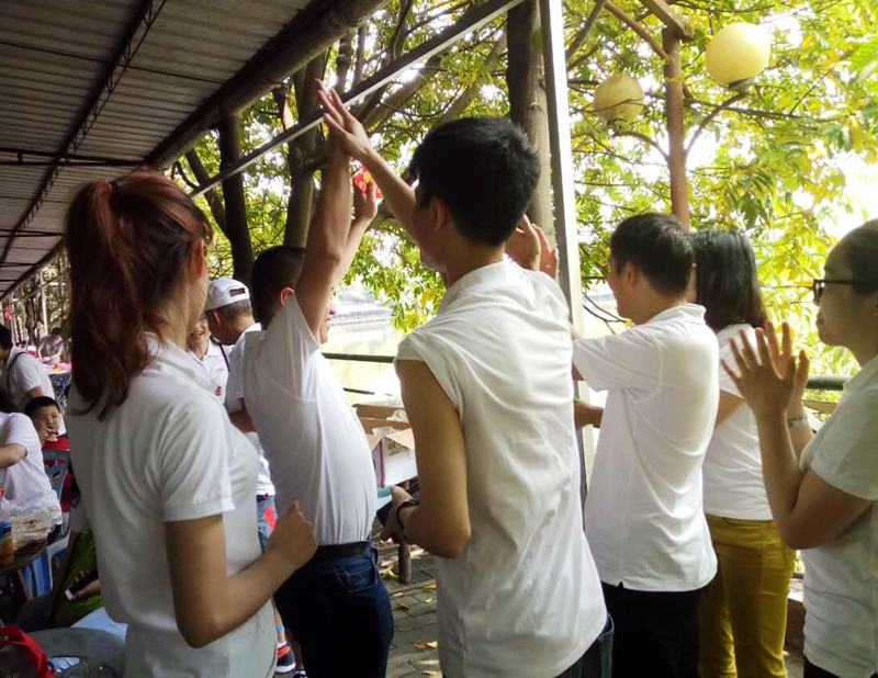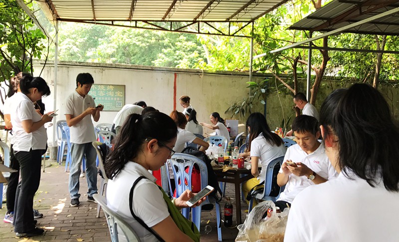 中午12点半,大伙相继下山于烧烤店会合。领导们在烧烤期间还不忘来一波微信发红包福利,大家吃得开心,抢得顺心。烧烤期间还进行了才艺比拼,最终出得厅堂入得厨房的客服MM的烤肉获得一致好评。下午2点多,在把桌面的食材扫荡完后,大家合影留念,各回各家,各找各节目……