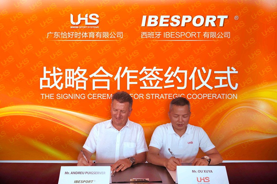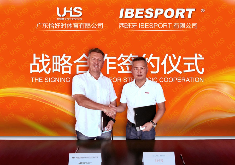 IBESPORT公司Andreu先生(左)与广东恰好时总经理欧旭亚先生(右)握手致意