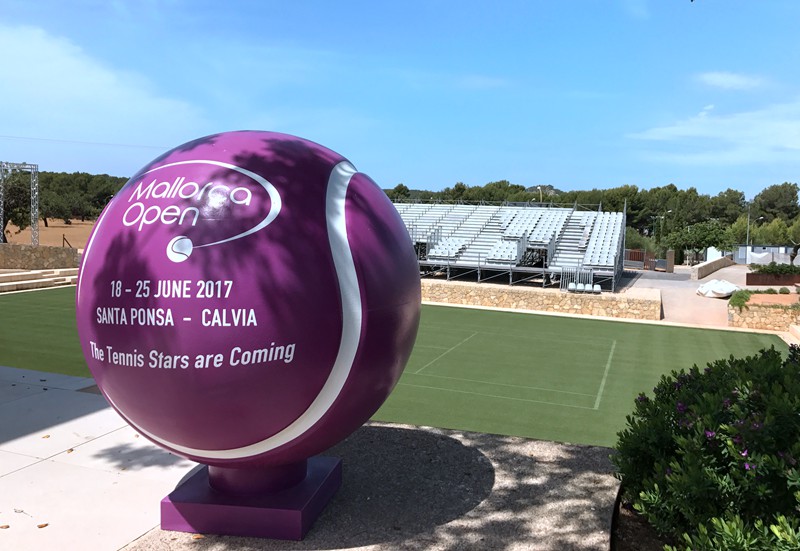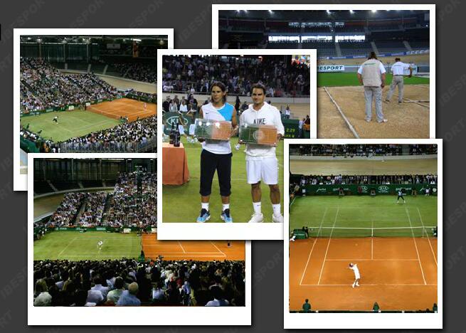 西班牙IBESPORT公司1995年诞生于纳达尔的家乡、美丽的马洛卡岛,作为西班牙乃至欧洲知名的红土球场施工商,近年来IBESPORT承接了马德里公开赛、马洛卡公开赛、纳达尔网球俱乐部、莫亚网球俱乐部、西班牙戴维斯杯、联合会杯等大型赛事、知名机构的场地建造。IBESPORT不仅精于建造一流的欧洲传统红土网球场,更对于临时搭建的表演赛场地也了如指掌,最著名的便是2007年在马洛卡“星球最强红土-草地表演赛”,邀请了红土之王纳达尔和草地王者费德勒对赛,而比赛的场地则非常有创意的一半草地一半红土。当年这座临时搭建的球场便是Andreu先生及他的团队的代表作。也得益于有建造草地球场的经验,今年进行的WTA马洛卡公开赛也就是通往温网的外卡赛也建造了几片草地网球场,同样这也是IBE公司的杰作。