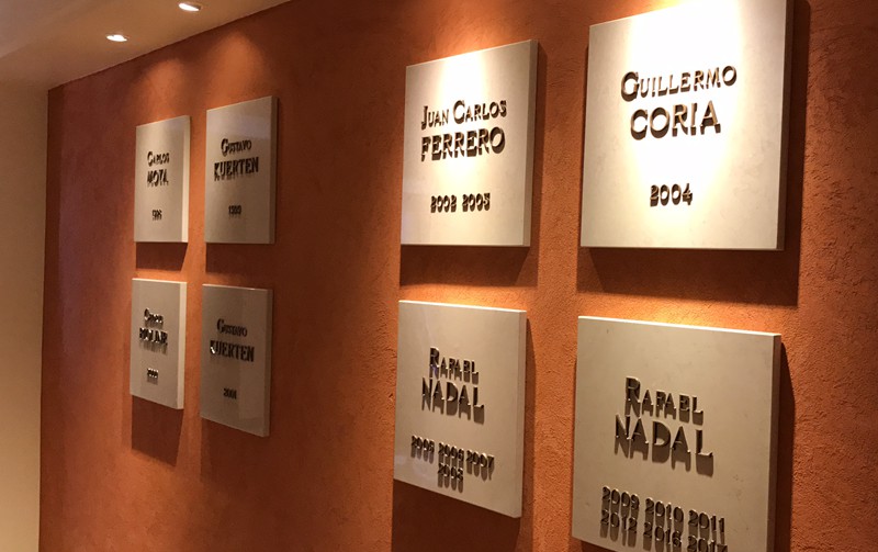 走进世界最美网球场,俱乐部的副主任Eric SEIGLE亲自带领考察团参观了俱乐部的设施和赛事展览厅。在一条冠军走廊上两边分别挂着每个年份赢得蒙卡冠军的球员名字,其中最注目的就是2005-2012年,2016-2017年在这里10次称霸的纳达尔。随后Eric SEIGLE女士还向考察团成员分别赠送了俱乐部纪念品。并和大家合影留念。
