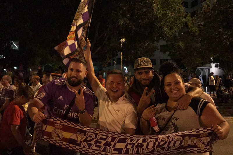 巴塞罗那街头庆祝夺冠的皇马球迷