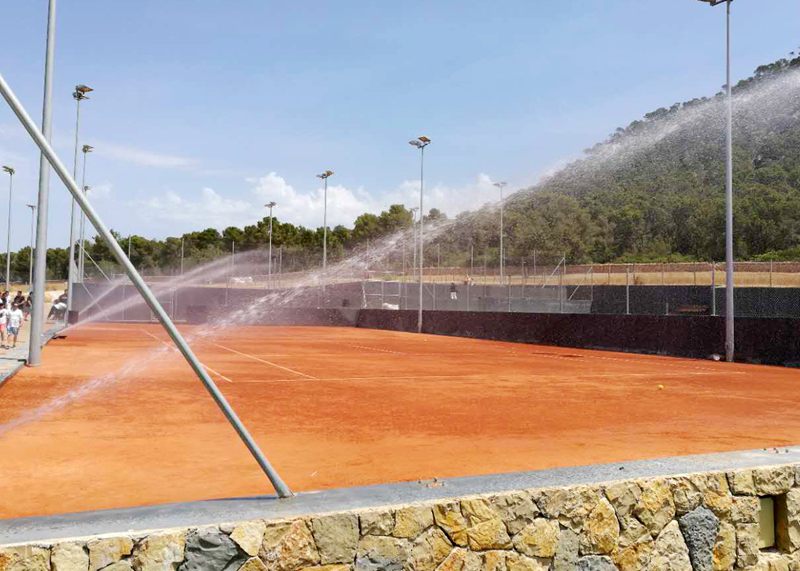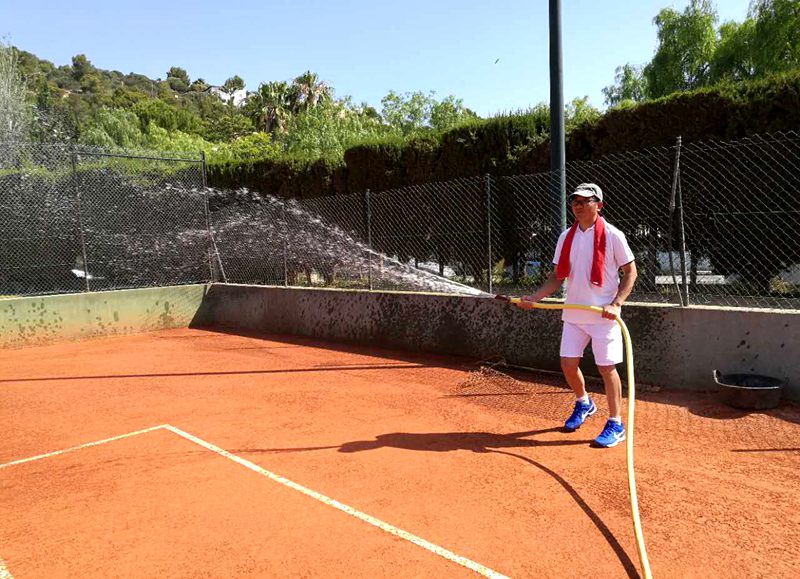 游览景色是其次,考察红土才是我们此行的目的。昨天考察完纳达尔网球学院后,今天马洛卡知名的红土施工商IBESPORT老板Andreu先生带领大家来到Sant ponsa country club,这里即将在6月中举办马洛卡公开赛,这里的红土场地都是IBESPORT公司建造的。不止如此,包括马德里公开赛、西班牙戴维斯杯赛、联合会杯赛以及当年费德勒对战纳达尔的草地-红土表演赛,这些知名场地都是IBESPORT公司的杰出作品。作为红土施工的权威专家,Andreu先生绝对够资格给考察团成员培训红土施工工艺。