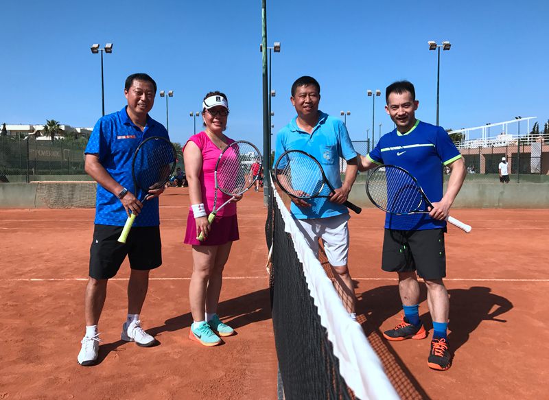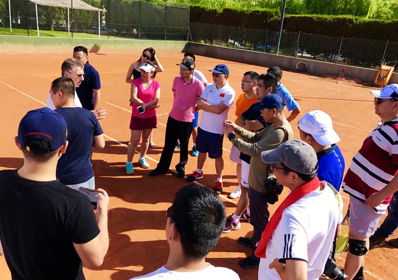 在培训开始前,考察团成员还迫不及待换上装备来几场红土体验赛,几名男女搭配的红土混双赛就正式开始了。由于是第一次在红土打球,大家对于红土特有的击球、滑步都不太熟知,基本还是沿用在硬地的打法。不过一番体验后,大家对于红土是赞不绝口。更令大家感到不可思议的是,在马洛卡、在整个西班牙,红土都是主流的场,整个西班牙都遍及红色一片,这也不难解释从小就在这样的场地训练的纳达尔们,为何在红土赛场能独领风骚。