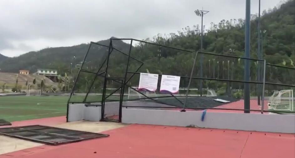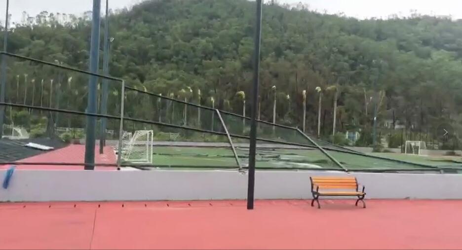 再加上地处山脚迎面受风,围网就像轻脆的筷子轻轻地被折断。所幸台风吹袭时球场并没有人使用,否则倒下的岂止是几片围网那么简单?