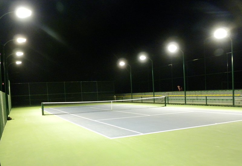球场灯光方面。ITF(国际网联)对网球场的光照度标准是业余或训练用球场光照度不低于300lx,专业比赛不低于500lx,电视转播不低于750lx。普通网球场一般配置8-10盏灯,专业网球场至少配置12盏灯,以保证最基本的电视转播需求。