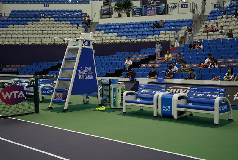 在中国,每年从1月初的深圳龙岗金地公开赛到11月的珠海WTA超级精英赛,一共会多达8站的WTA赛事在中国8个城市举办。而这些赛事都有一个共同点:那就是赛事的指定器材都是恰好时提供!包括即将开始的珠海精英赛,场地内的全系配套设施包括裁判椅、休息椅、网球网、司线椅、推水器、吸水器、单打支撑杆等都出自恰好时。我们再次用无可辩驳的实力证明了恰好时无愧于中国网球场设施第一品牌!