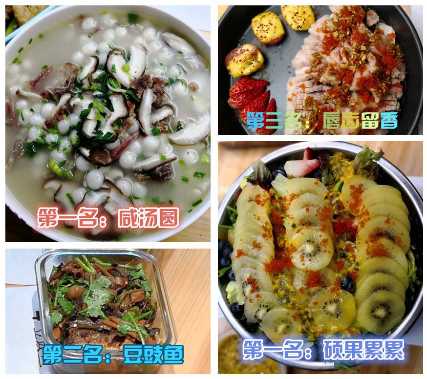 两天来,公司各个部门同事都积极响应,各显身手。收到累积32个参赛作品。而通过两天的厨艺大比拼,也决出最终的前三名。值得一提,在最后一天的公开投票环节,共有两个菜式收到一共的票数,并列冠军。因些,本届美食节共有4个作品获奖。而且,所有获奖菜式全都出自女同事之手。果然,恰好时美女“进得厨房出得厅堂”的传言并非浪得虚名……