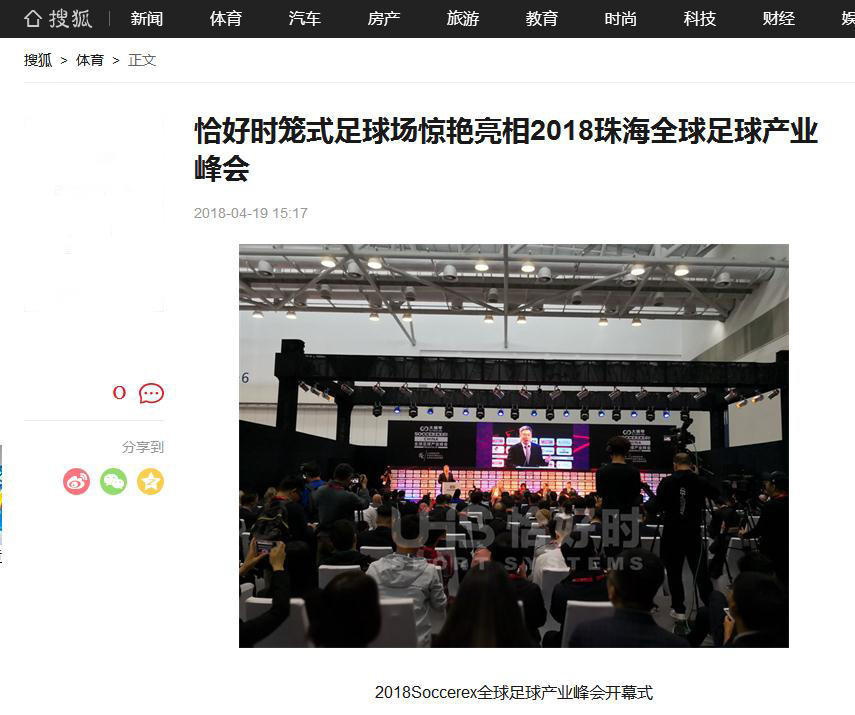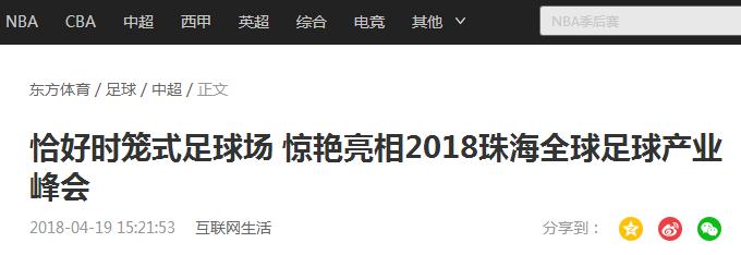还记得上周在珠海2018Soccerex全球足球产业峰会惊艳亮相的恰好时笼式足球场吗?最近一周频繁得到各大网媒的转载报道。可谓是令恰好时人“受宠若惊”。那么我们看看都有哪些媒体“围观”了恰好时这个小笼子呢?