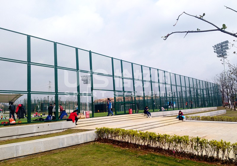 作为运动场配套设施的领导品牌,恰好时旗下的配套器材当仁不让成为了该生态公园的首选产品,包括球场围网、网球场地器材、羽毛球场地器材等。其中围网采用的是恰好时最高端的UHS-1101全铝合金框架内藏式拼装围网。应用于1片11人足球场、4片五人制足球场和2片网球场,累积围网总面积达近7000多平米。