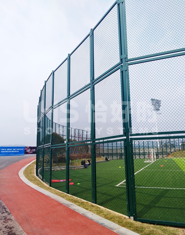 值得一提,双龙体育中心的围网采用定制的6米高目字型拼装架构,同时考虑到铝材较轻,抗风能力较弱,为提高围网抗风抗压能力,我们还特意为铝材作了加固处理。以保证球场全天候都能使用。