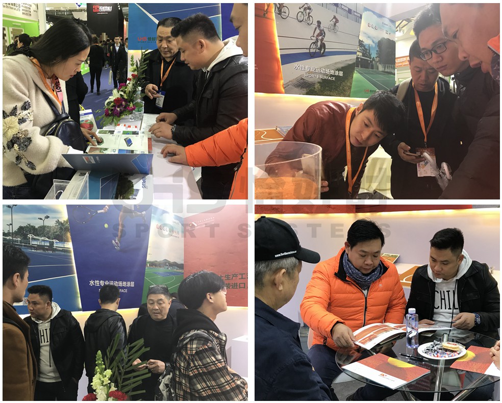 由于是首次参展,不少老客户拜访时还有点诧异以围网、器材在行业内著称的恰好时怎么今年玩起“跨界”?其实恰好时正式推出地材产品已有一年历史,此番也是借着亚太地区最大的地面材料专业展会向客户展示一系列新产品。包括拥有近20年历史的民族品牌丙烯酸托柏斯、全系进口的世界级品牌马贝TNS系统水性涂层,以及西班牙原装进口的欧洲传统红土网球场系统。恰好时的“跨界”也吸引了许多展会观众及行业客户的驻足和咨询。通过首日的展览,新产品获得了较高的品牌曝光。相信本次展会对于今年公司地材产品的销售会起良好的宣传作用。