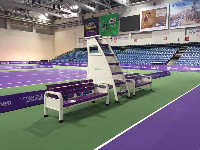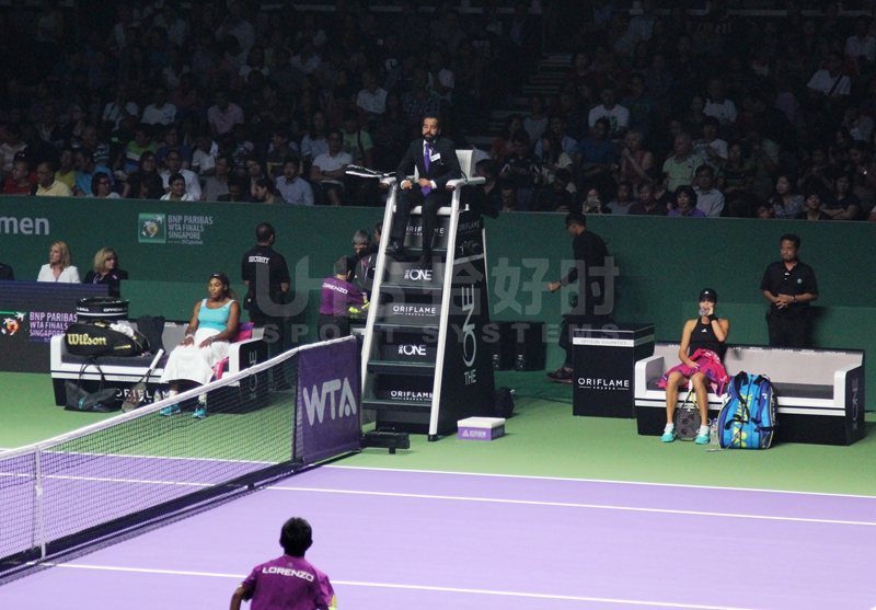 赛事的第二年,恰好时依照赛事组委会要求和根据场的颜色专门定制了亮丽的紫罗兰色裁判椅及休息椅系列。为总决赛全新打造的裁判椅,线条柔美,宛如一位挺立姿态的婀娜女性,其设计灵感便是来源于现代女性潮流时尚的打扮、婀娜多姿的体态。配套的休息椅和茶几,则像现代女性平时所用的拎包造型,时尚、富有流线感,使得整套裁判椅、休息椅组合更加贴合现代女性的形象。而紫色也象征着尊贵和浪漫,非常契合女子网球的主题,又和球场颜色相得益彰,为观众呈现一出最完美的视觉盛宴。有趣的是,新加坡的5年诞生了5位冠军,其中2015年的A-拉德万斯卡、2016年的齐布尔科娃均上演了“三胜夺年终”的逆袭好戏。