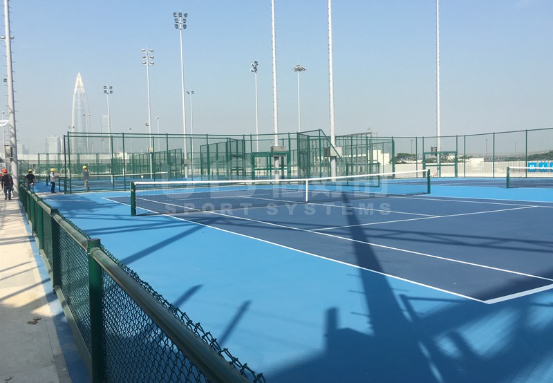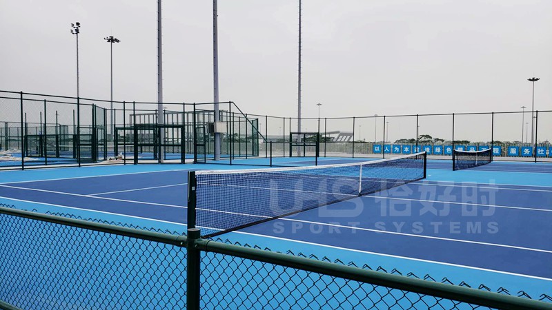 令我们倍感到骄傲的是这座美丽的健身广场的球场所有围网项目,均全部源自恰好时,采用热销的UHS-1007精钢冲压拼装围网系列,部分球场的围网则采用UHS-1006钢结构框架内藏式拼装围网系列。总围网面积超1万平米,是继南方科技大学后深圳又一个破万平米纪录的围网项目。另外作为网球场配套设施的领导品牌,恰好时也成为所有网球场的网球柱、网球网唯一供应商。