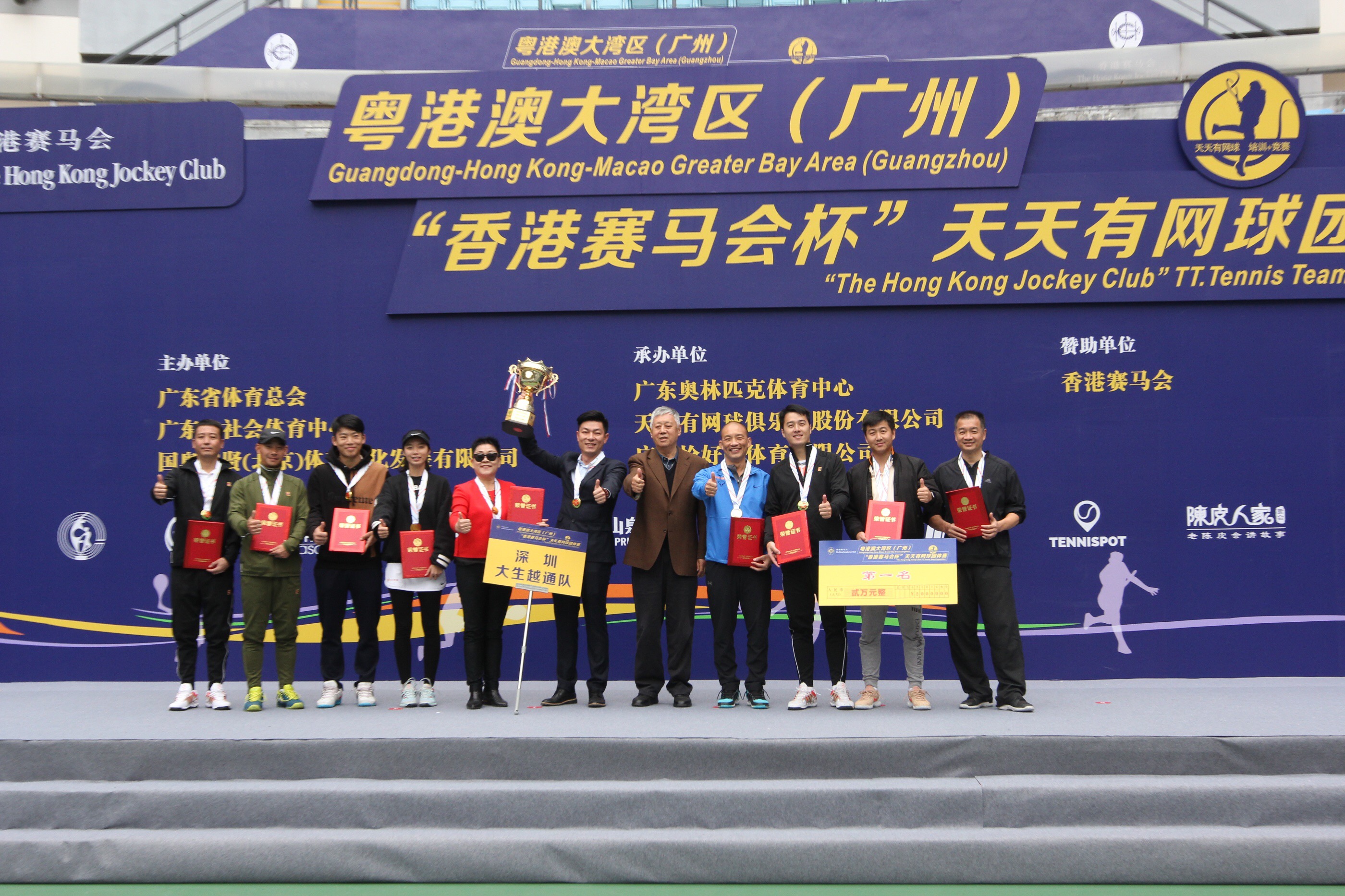 2019粤港澳大湾区(广州)"香港赛马会杯"天天有网球团体赛于1月6日下午在广东奥林匹克网球中心圆满闭幕。经过两天近百场的激烈争夺,最终深圳大生越通队以一波6连胜勇夺冠军,成为首届粤港澳大湾区网球团体赛的霸主。