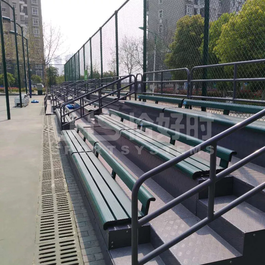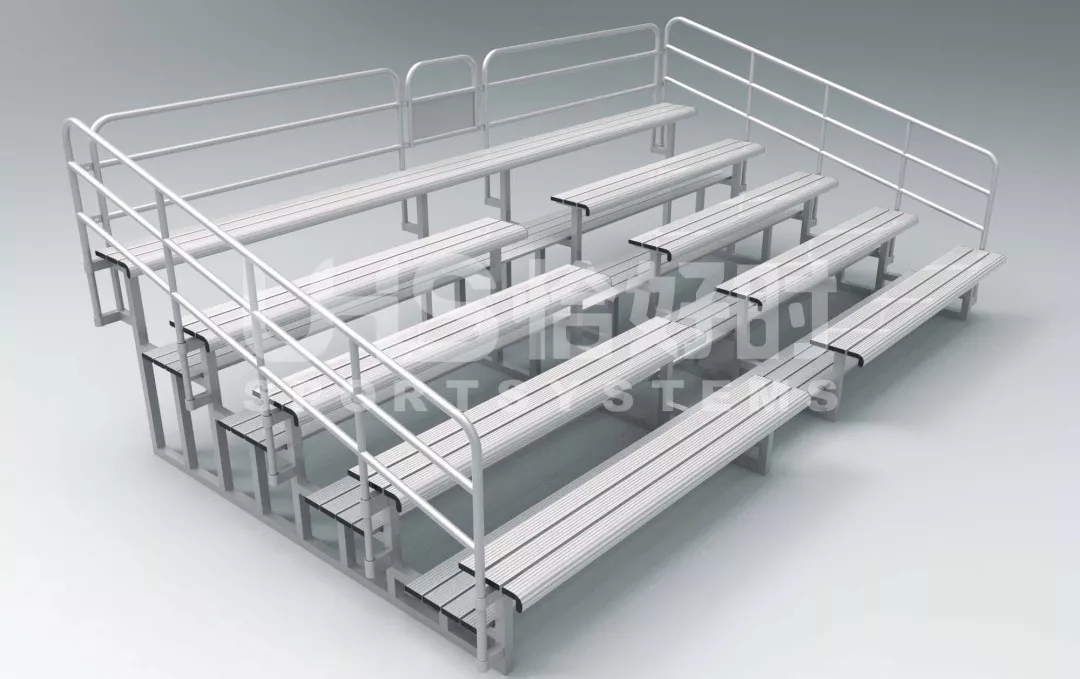 中间人行道设计方便人流进出,可根据场地的变换和调整灵活拆装,是其它传统水泥墩看台无法比拟的(随场地需要可无限延长)