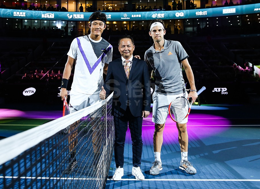 在这样一个星光熠熠的一天,恰好时创始人欧旭亚董事长还代表企业作为钻石球场夜场首场比赛的挑边嘉宾。他为中网男单头号种子,有着红土小王子之称的奥地利名将蒂姆和中国男子未来的希望张之臻的男单第二轮比赛挑边。欧总向来与中国球员非常有缘,在武汉他就曾经为金花王雅繁的比赛担任挑边嘉宾。不过比赛结果却没有什么悬念,技高一筹的蒂姆直落两盘轻取张之臻晋级八强。中国男子网球的“学费”还得交。