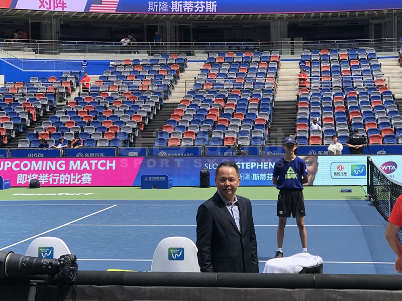 这是恰好时欧总时隔四年莅临光谷国际网球中心,这一次他带着多年潜心的研发成果:全球首款针对WTA赛事的智能升降裁判椅一起亮相2019武网赛场。他上一次参与武网挑边还是2015年,当年挑边的球星伊万诺维奇早已退役,而武网的精彩却从未停步。今天参与挑边的两位球员也是看点十足,前美网冠军斯蒂芬斯人称“黑妹”。因为当年在美网夺冠后一句:“收到支票后我很兴奋,数了一下到底有多少个零。”而被中国球迷戏称为“数零妹”。而她的对手王雅繁堪称今年进步最大的中国金花,在年初的阿卡普尔科,王雅繁一路力克多名好手摘得生涯首冠。她也是继李娜后第二位能在本土外的赛事取得冠军的球员。最新公布的排名,王雅繁也刷新了生涯的新高来到N0.48。