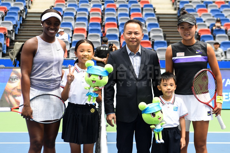 今天,2019武汉网球公开赛进行女单第二轮的争夺,在中央球场进行的第二场比赛由2017美网冠军、2018法网亚军斯蒂芬斯迎战中国金花王雅繁。本场赛前,由广东恰好时体育有限公司创始人兼董事长欧旭亚先生作为嘉宾出席挑边仪式。为美网冠军挑边,助力中国金花!
