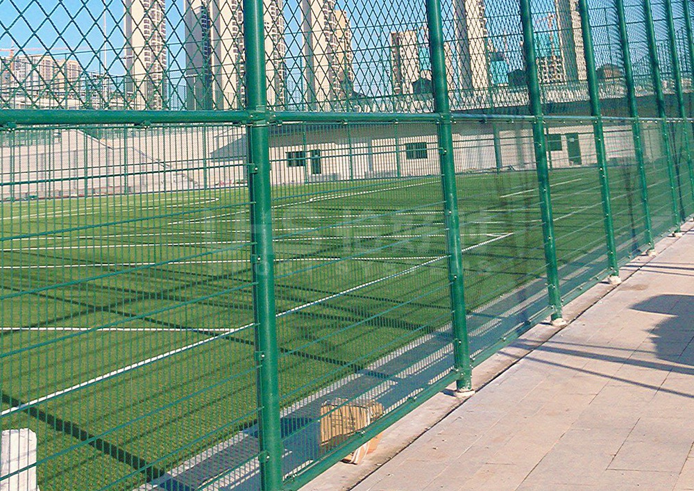 ※足球场面积大,使用传统包塑围网抗风效果差。
