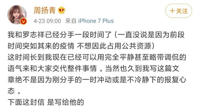 周扬青微博截图