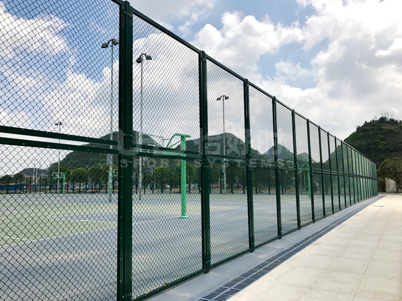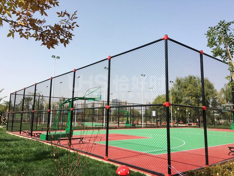 篮球的对抗性质让它选择围网方面更倾向于普通的编织包塑围网。这种围网具有一定的弹性,人在不慎撞击到场地的围网时会起到一定反弹作用,减缓人的疼痛和降低受伤的可能。PE包塑围网也分很多种,有传统的焊接式围网,这种围网一般都是现场切割、喷涂、焊接,对环境造成二次污染外不说,安装后一般存在较大安全隐患,焊接口很容易在风雨侵蚀后出现断裂、腐蚀,从而出现倒塌的可能。而现代的围网基本都采用拼装模式。即围网不再经过现场的切割、焊接,用定制好的横杆、立柱、扣件现场组装完成。这种围网的好处是安装工期短、扣件能很好地保护围网的支柱,从而杜绝因长期使用后出现的生锈、腐蚀情况。能最长时间保证围网的使用寿命。