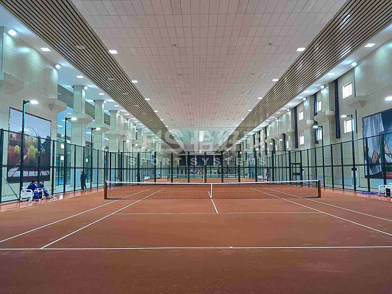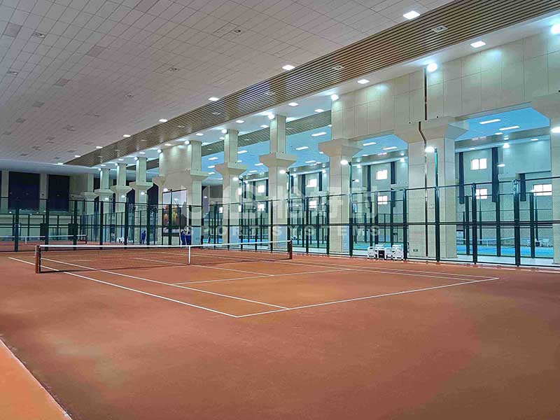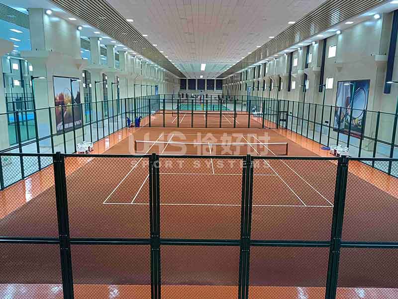 网球场建设选用了恰好时的Celabasa(塞伦巴萨)欧洲传统红土网球系统、TOPLUS(托柏斯)高弹缓冲系统、LTC专业网球场灯、拼装围网以及专业的网球场配套设施,一站式建设专业比赛级别网球场地,为企业的职员创造了良好的运动环境。