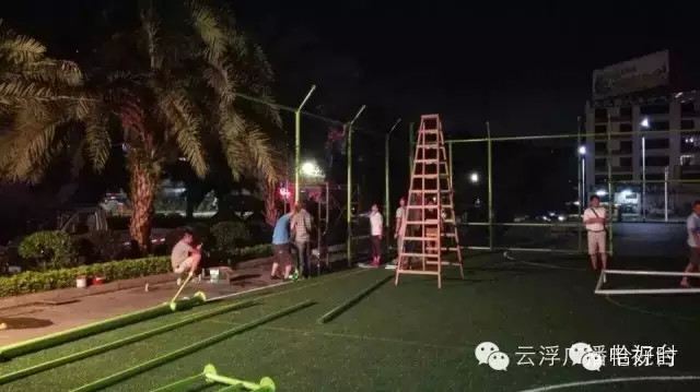 今天上午,云浮城区东方时代广场施工现场,恰好时可移动笼式足球场安装工作已进入扫尾阶段,工人们正在进行围网及照明等配套设施的施工工作。