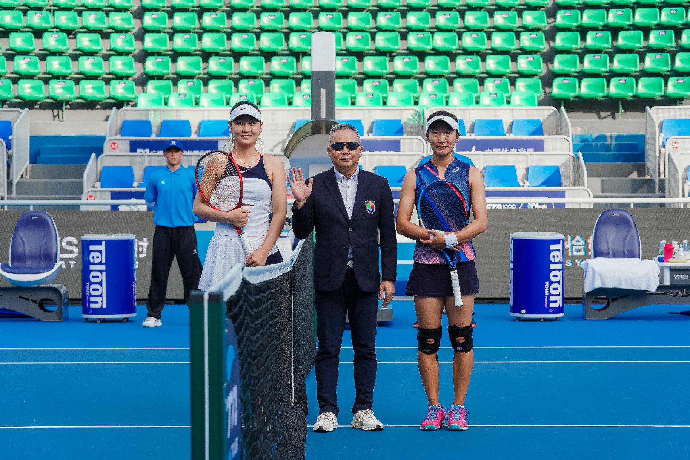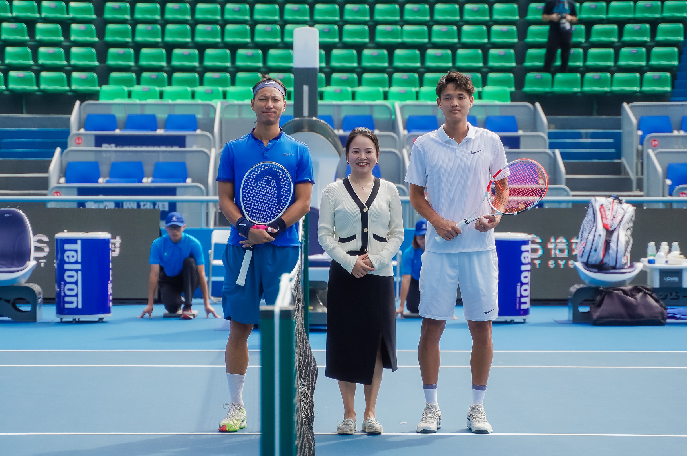 恰好时的董事长欧旭亚先生和总经理常晶晶女士作为比赛的挑边嘉宾,为选手们开启精彩对决。赛事期间,常总还接受了广东体育频道的采访,分享了恰好时如何深度参与到网球赛事当中助力网球运动发展,以及参加本次中网巡回赛的心得体会。