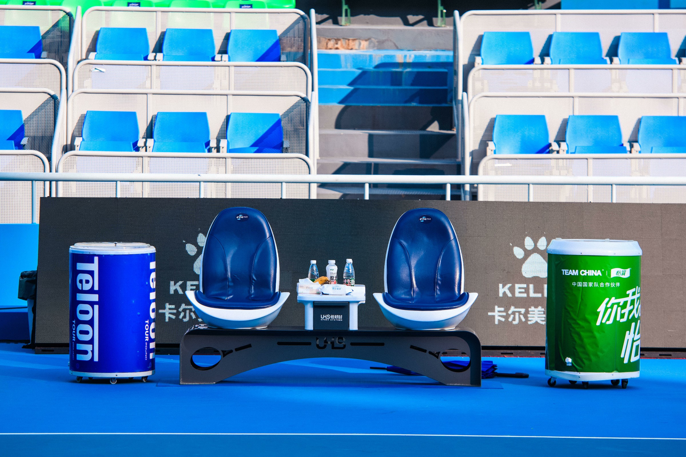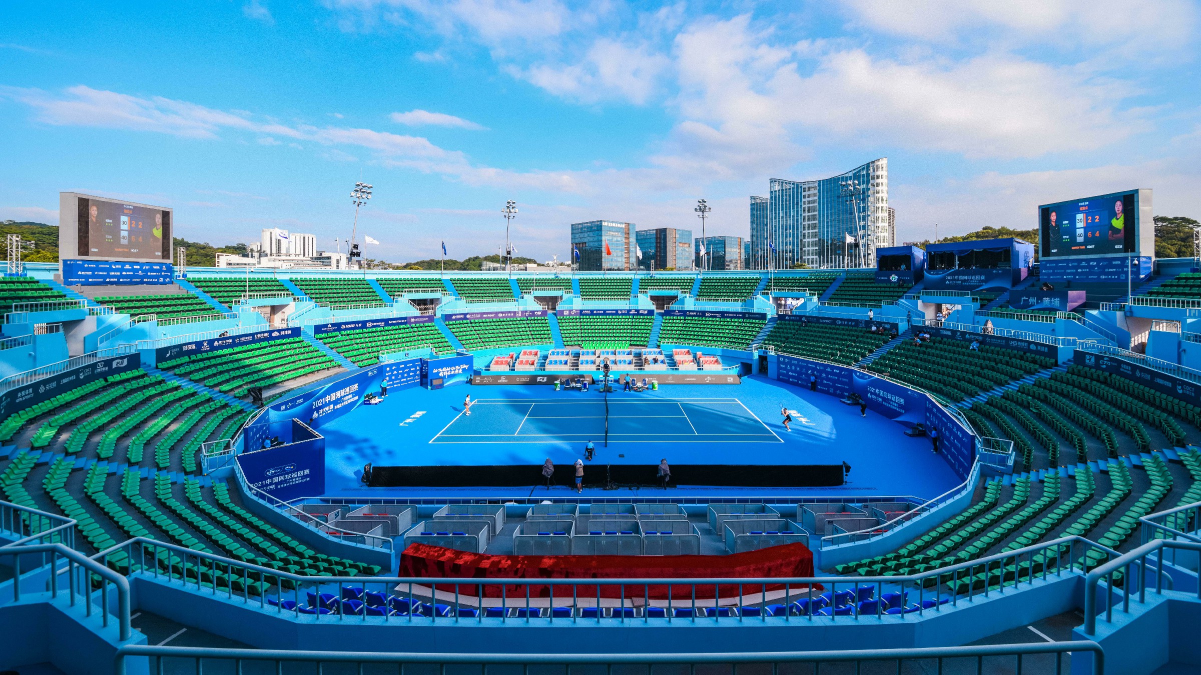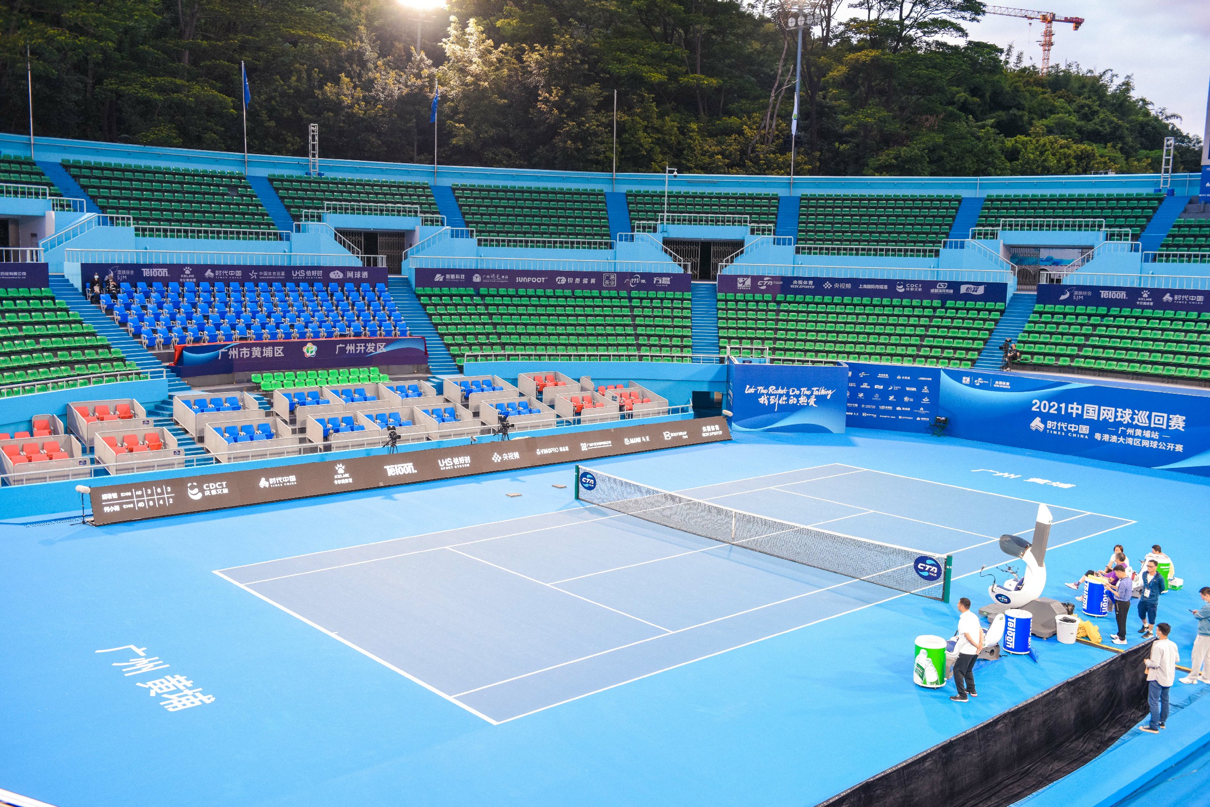 本年度中国网球巡回赛由去年的800积分升级为1000积分,意味着赛事进行了新一轮升级,也提高了此次赛事的标准和水平。本次巡回赛的举办地仍选在广州开发区国际网球学校,比赛场地选用的是天蓝色的网球地面,与CTA中巡赛的主题配色相呼应,在晴空万里下场地显得气势更加恢宏。