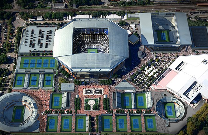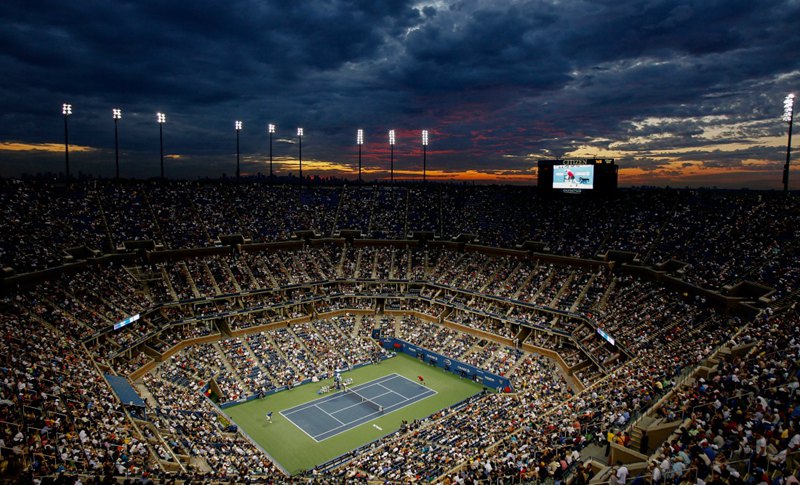 大满贯的球场都很壮观:澳网的罗德拉沃尔球场能容纳15000人,温网的中心球场能容纳15000人,法网的菲利普夏蒂埃球场能容纳14800人,印第安维尔斯网球公园的1号球场能容纳16100人。但是美网的中心球场阿瑟阿什球场能容纳23000人!这是世界上最大的网球场,没有之一。并且土豪的美国人还耗资1.5亿美金给这么大的球场安装的可伸缩顶棚。置身这样的球场,可想而知,球员有着怎样的激动!