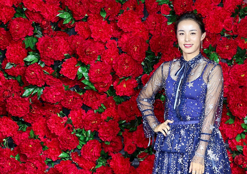 珠海WTA超级精英赛今年的主题是“Shine in Zhuhai”(闪耀珠海),所以球员酒会上组委会布置了一大面红牡丹墙,每位球员都会手持印有主题口号的红色折扇,在这面充满中国风情的背景墙前驻足、留影。