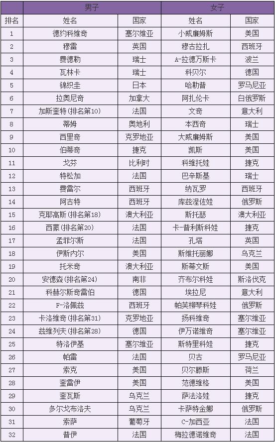 以下是具体种子排位: