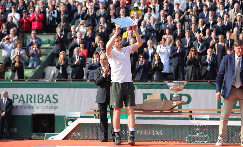 几家欢喜几家愁,这一次充当背景板又是穆雷,这两位从小一起打球的好友职业生涯轨迹极其相似,遗憾的是穆雷尽管能长时间保持巅峰状态却在大满贯数量方面相比小德相去甚远。而今年首次打入法网决赛已是他第10次大满贯决赛经历。就在小德成就全满贯的同时,穆雷也郁闷地集齐了全满亚(即在四大满贯都拿了亚军)。不过需要指出的是,以往红土的菜鸟穆雷今年在红土战绩可谓进步明显,连续闯入三个红土赛决赛,并收获了罗马赛冠军。也许在明年、在以后的日子里,我们也可以期待英国小子在罗兰-加洛斯加冕皇冠的高光时刻。