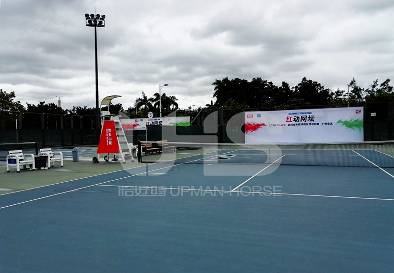 今天是武汉网球公开赛城市俱乐部赛广州站的比赛,赛事举办地位于广州奥体中心网球场。距离恰好时总部也就1公里的车程。今天恰好时特意为了武网赛事更换了网球中心大部分的器材设备,全新器材全新的LOGO在网球中心显得格外耀眼。广东恰好时体育有限公司副总经理常晶晶女士也应邀出席了广州站开幕式。