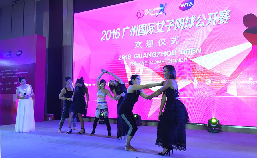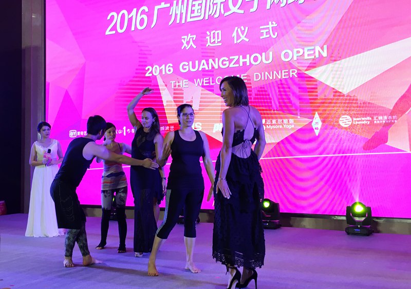 晚宴在极具中国特色的氛围中进行,首先是为上届单双打冠军扬科维奇和辛吉斯颁发具有本土特色的纪念品。接着是瑜珈表演和具有深厚中国特色的击鼓表演。将晚宴的气氛推向了高潮。上届的两位冠军还现场体验了一把瑜珈的魅力。