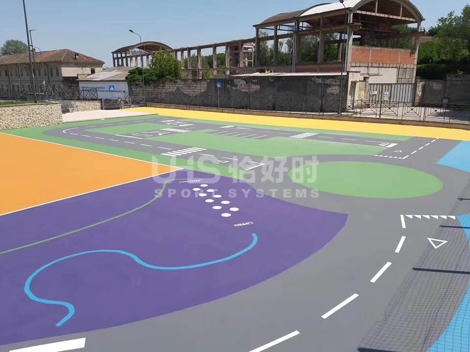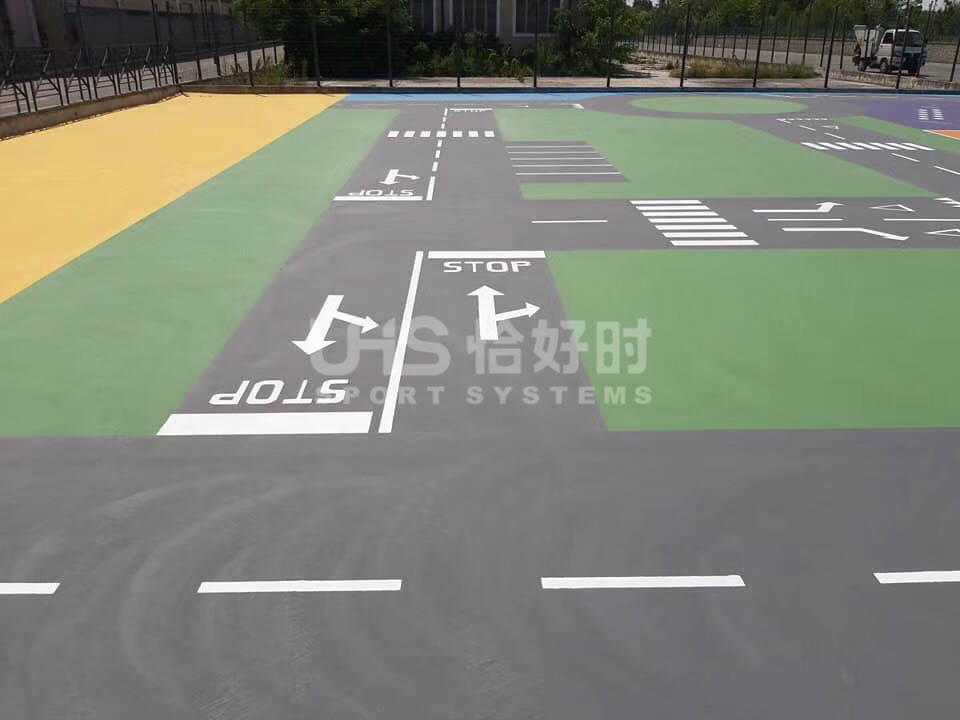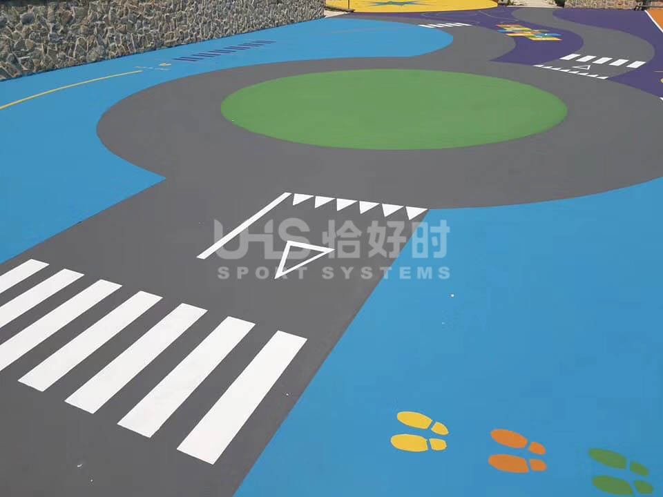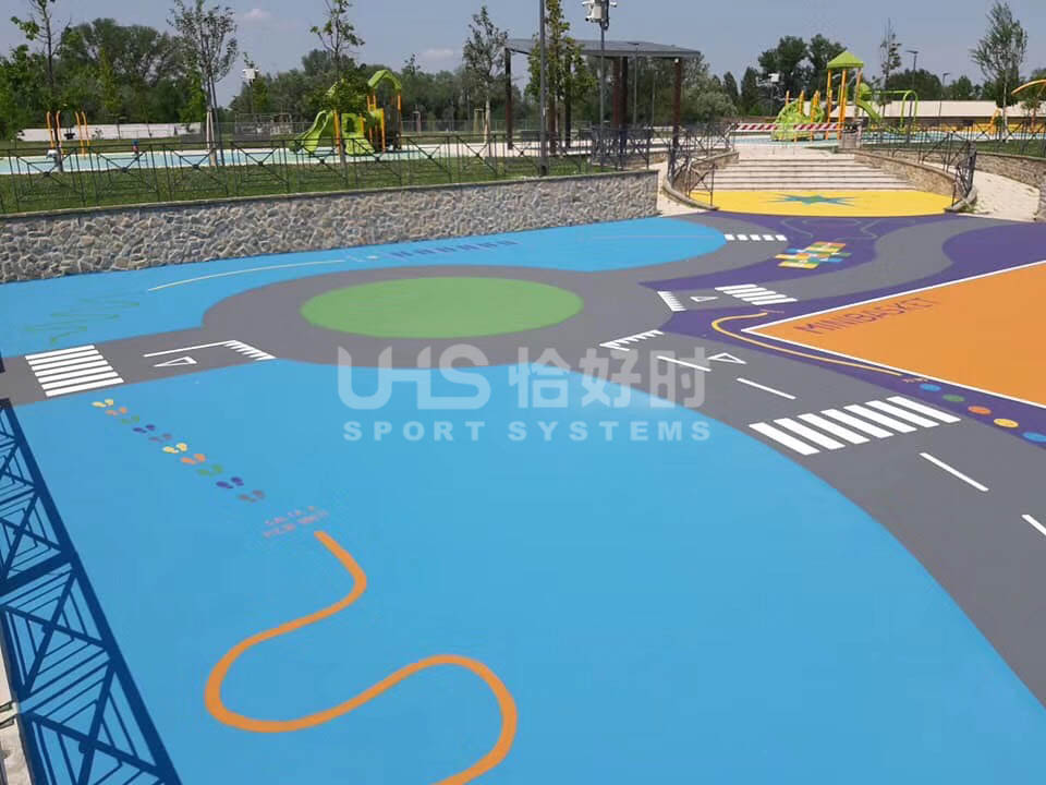 国外某游乐公园地面铺设材料使用恰好时地面材料中的马贝。