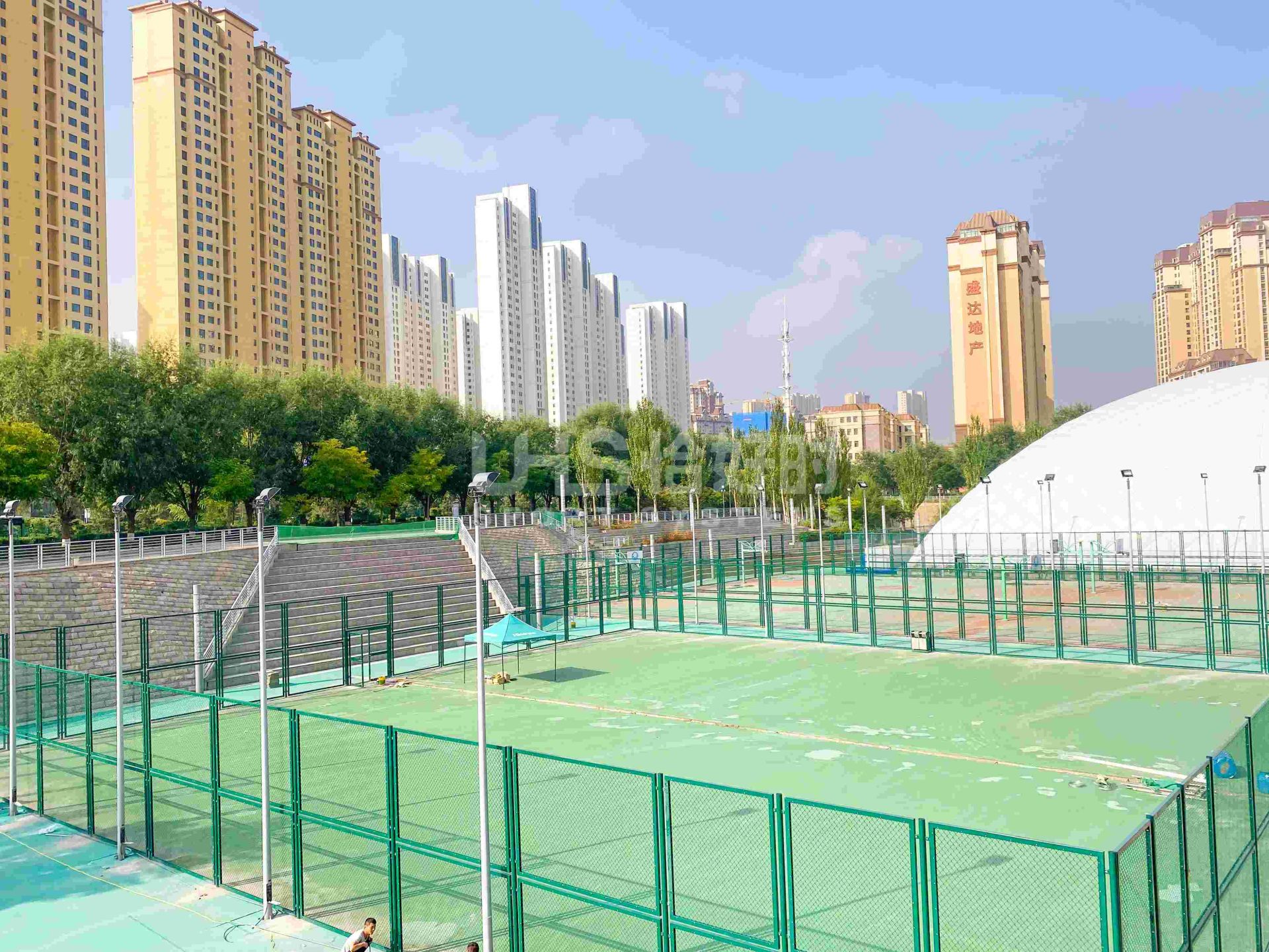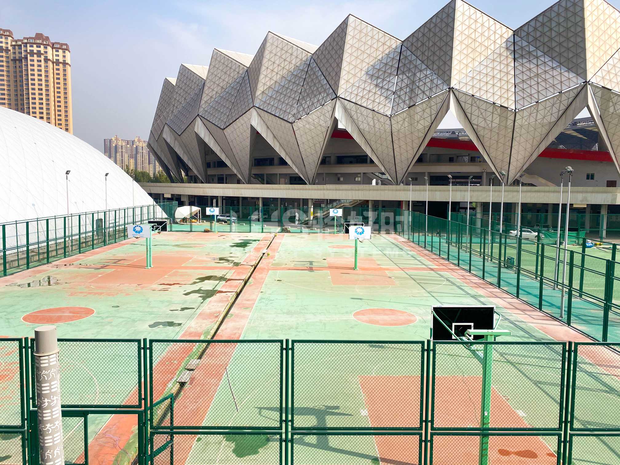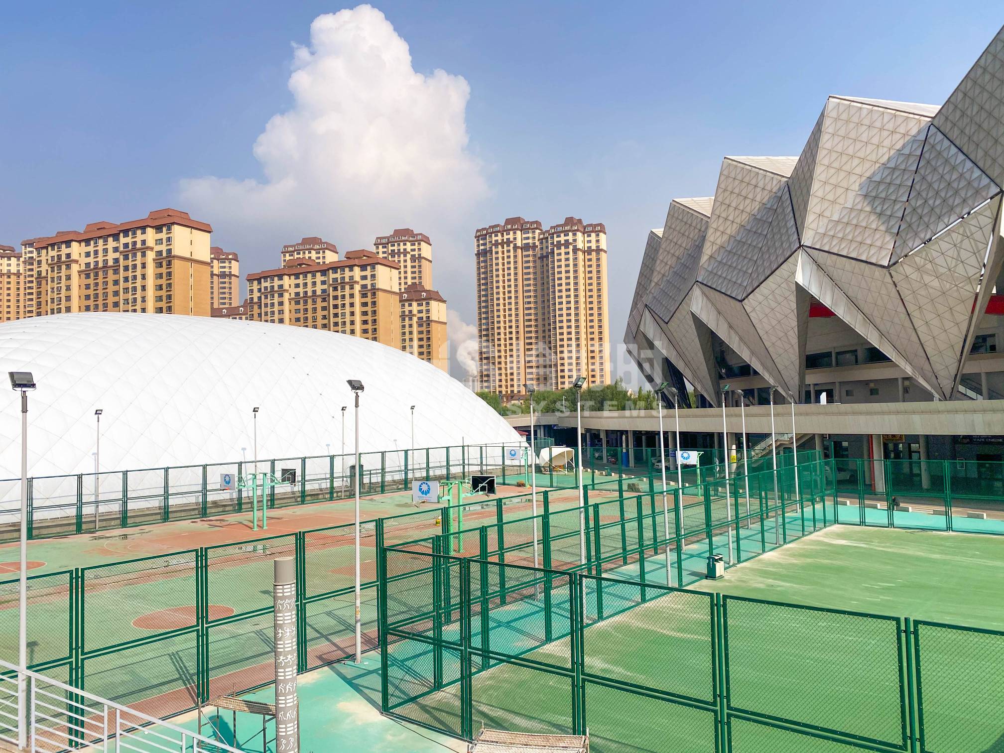 该体育中心室外运动场围网均使用了恰好时钢结构框架拼装围网,以增厚新热镀锌防护层及超耐候聚酯分末喷涂,全天候全方位的双重防护抗锈,防腐耐用又不失环保美观。