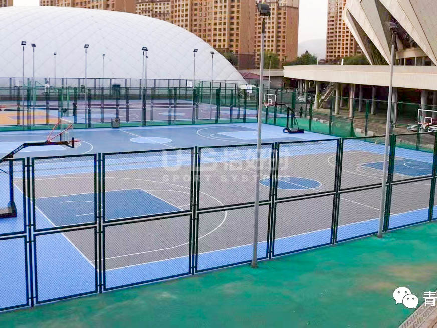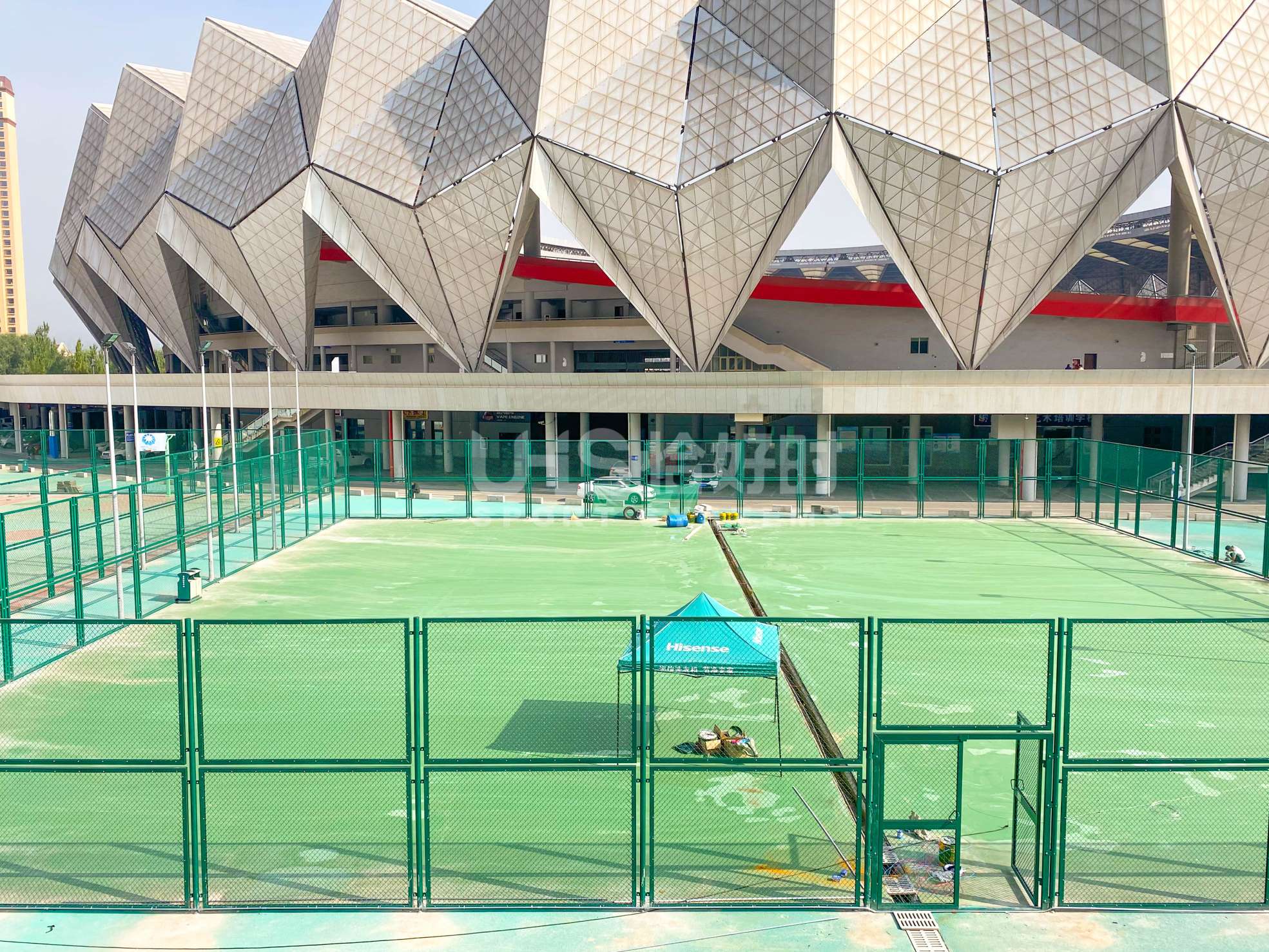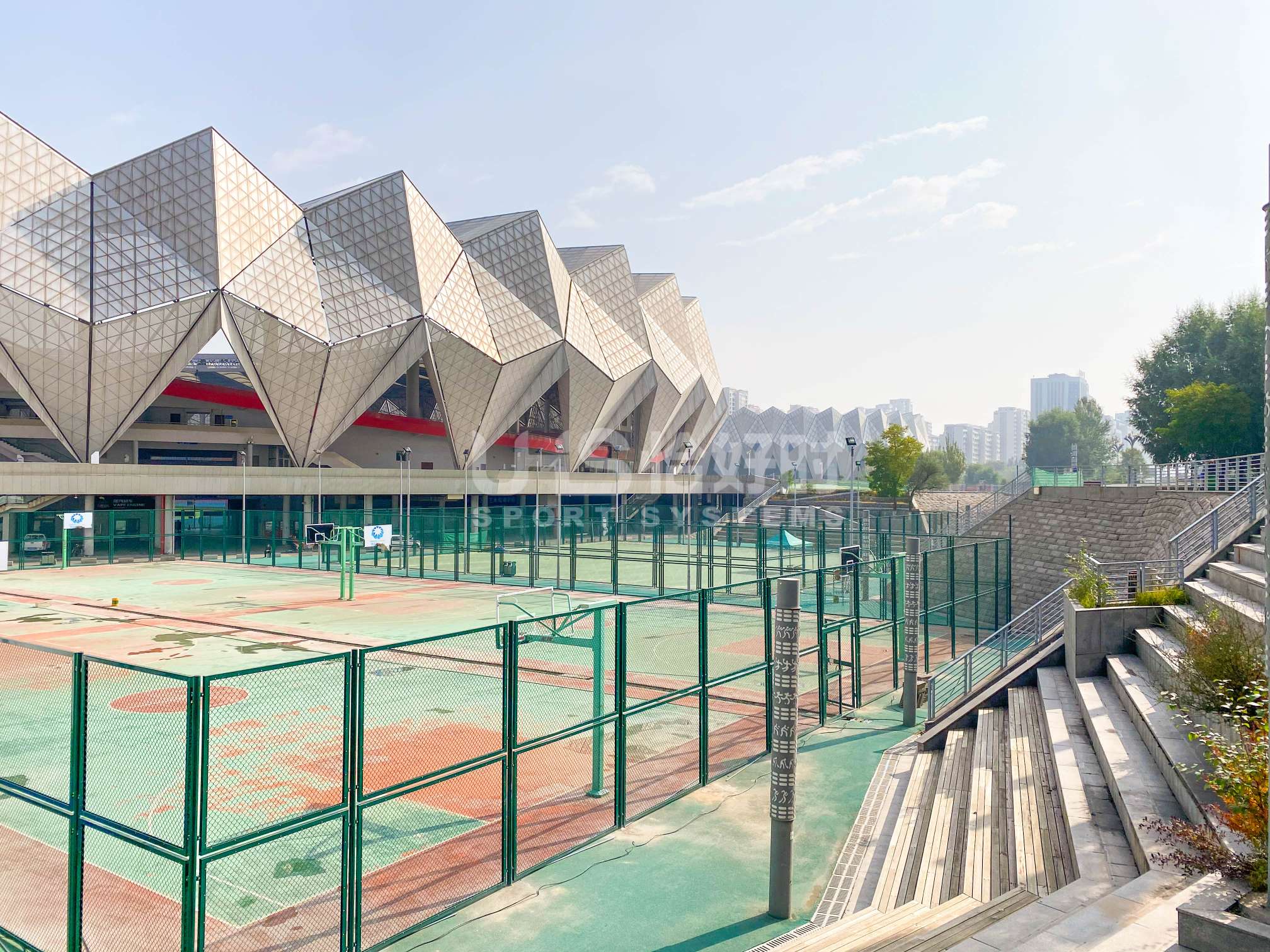 该体育中心室外运动场围网均使用了恰好时钢结构框架拼装围网,以增厚新热镀锌防护层及超耐候聚酯分末喷涂,全天候全方位的双重防护抗锈,防腐耐用又不失环保美观。