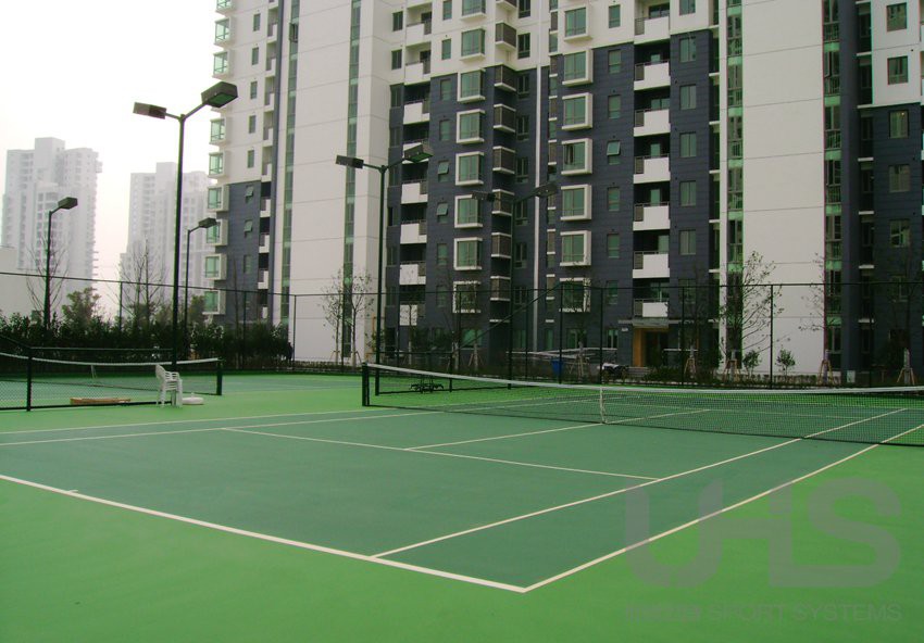 苏州第五元素小区的丙烯酸球场、球场围网