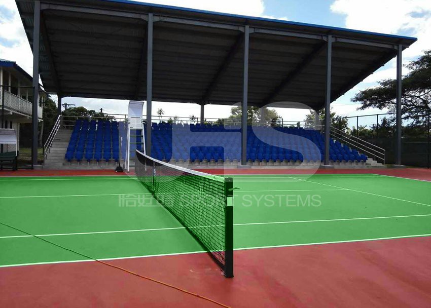 萨摩亚是位于南太平洋的一个美丽的群岛国家,终年沐浴着海风,阿皮亚是萨摩亚独立国的首都,每年平均气温27℃,恰好时项目阿皮亚网球中心正位于首都的中心区域,毗邻着海风,风景非常秀美。网球中心的围网、裁判椅、休息椅、球网球柱均是中国制造的恰好时品牌。
