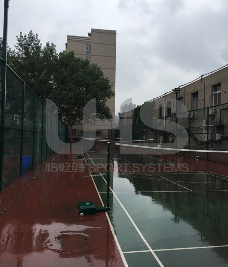 陕西省西安航空学院篮球场、羽毛球场,采用UHS-1004精钢冲压开合扣件拼装围网,场地器材还包括羽毛球裁判椅,羽毛球网等。