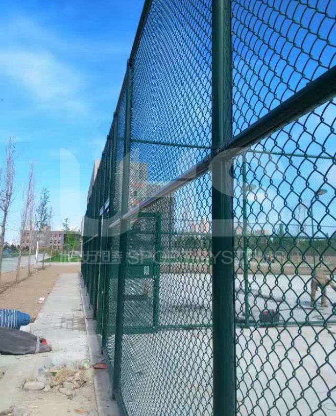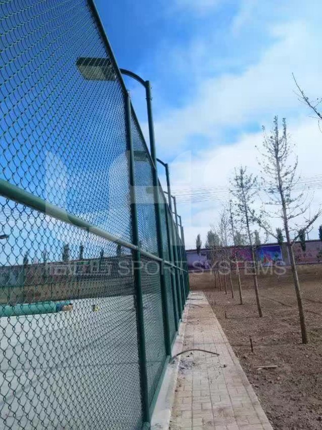 甘肃省武威职业学院采用UHS-1007精钢冲压扣件拼装围网,灯柱采用UG-1000的钢结构1000W泛光灯。