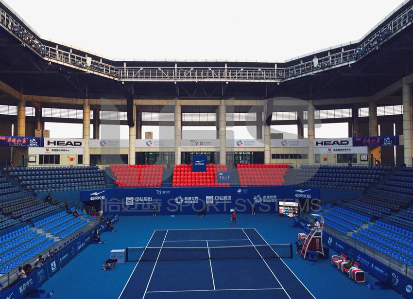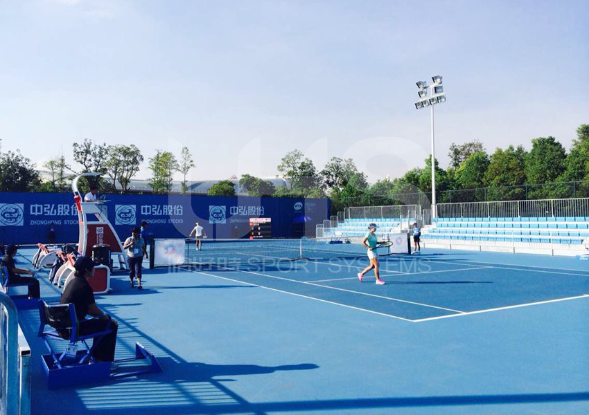 江西网球公开赛使用的裁判椅、休息椅、网球网、网球柱及防风网、司线椅、单打支撑杆均为恰好时制造。