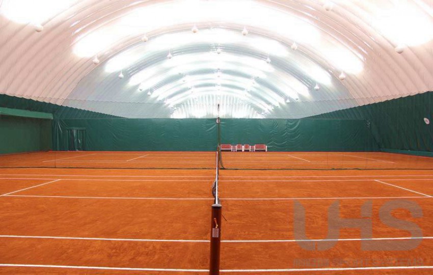 北京国家网球中心膜结构红土网球场,采用TP-2299裁判椅休息椅组合,木纹色TP-2008网球柱及TN-1004比赛型网球网。