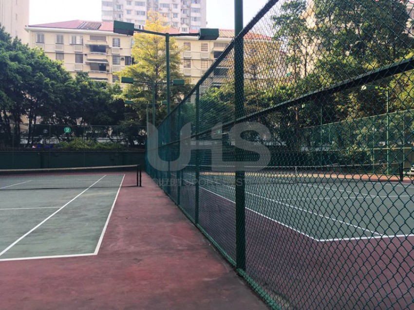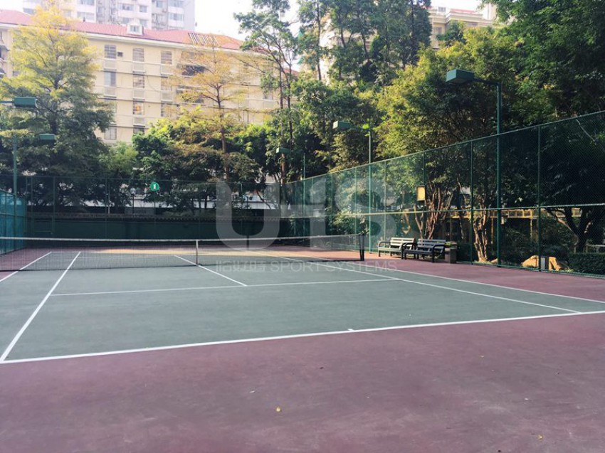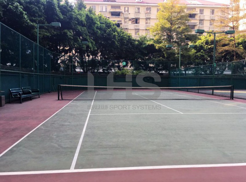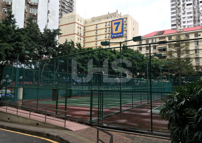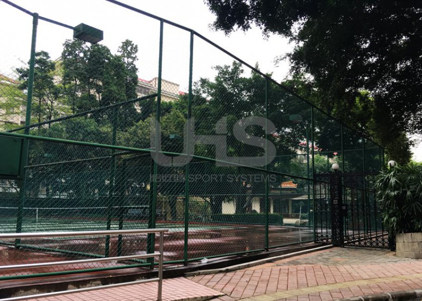 广州市花园酒店位于越秀区环市东路淘金地铁站附近,这里曾经是广州乃至中国最豪华的五星级酒店之一,接待过许多外国友人及中国领导人。项目是位于酒店里面的两片网球场,由于建造的年代久远,球场的围网仍采用传统的焊接式组合,包括网球网、网球柱、休息椅均为恰好时制造。