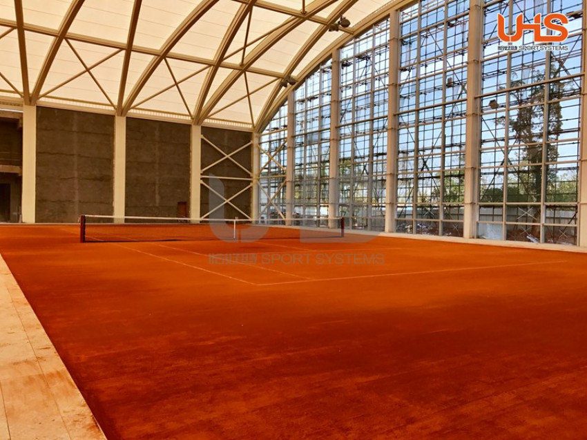 江西南昌国际体育中心的红土网球场,是中国首个采用剪力顶篷设计的欧洲传统红土网球场,产品及施工工艺全部来自西班牙,由西班牙著名的施工团队IBE Sport提供技术指导。是一座完全符合法网比赛标准的传统红土网球场。项目于3月初竣工,并于3月4-5日举办了法网青少年外卡赛的资格赛。获得一致好评。