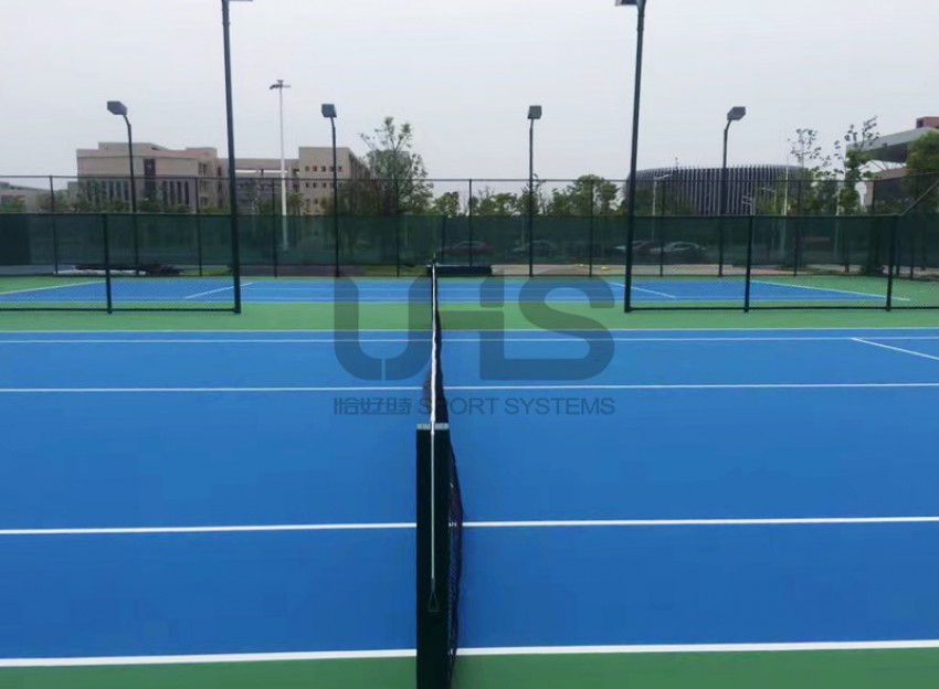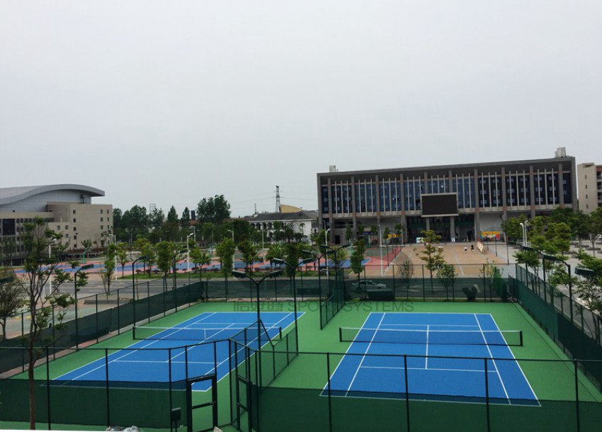 湖南幼儿师范高等专科学校位于湖南省常德市武陵区丹州乡高泗路,学校新建有两片丙烯酸硬地网球场。球场地面材料采用恰好时新代理的丙烯酸品牌托柏斯,颜色搭配为深蓝+深绿。为美网公开赛同款颜色搭配。球场配套设施方面网球柱、网球网及围网均为恰好时制造。