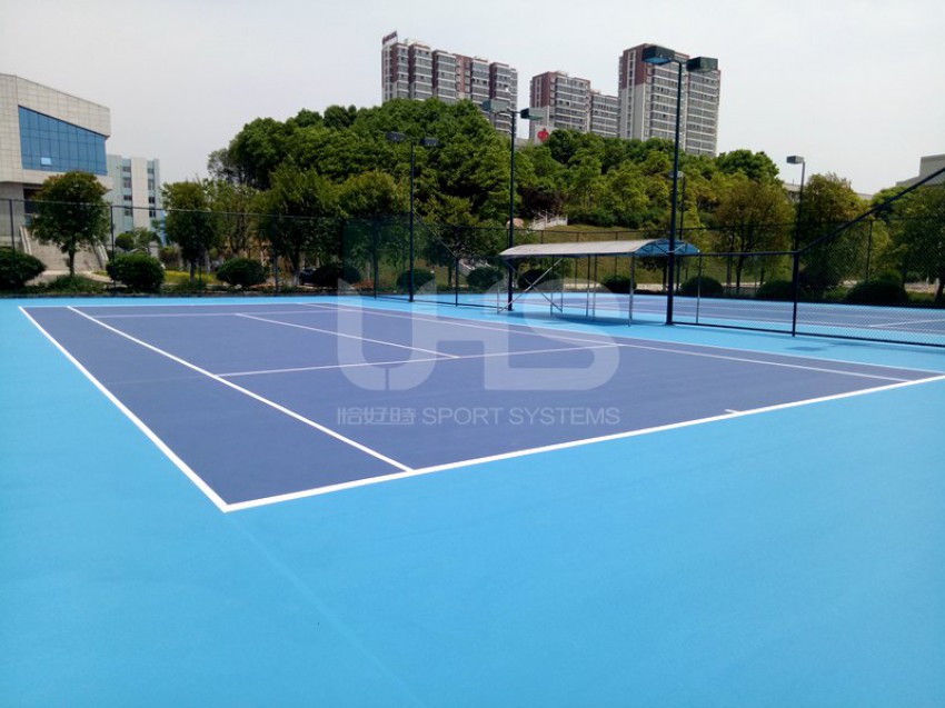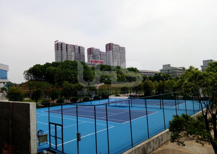 长沙市周南中学由著名革命教育家朱剑凡于1905年毁家兴办,2004年成为湖南省首批省级示范性普通高中。因为在湖湘大地首开女学先声,被誉为“中国女子第一校”。坐落在长沙市芙蓉北路,校园占地415亩,项目是位于校园内的三片室外网球场(含一片单打场),采用恰好时独家代理的托柏斯丙烯酸地面系统,颜色为内场深蓝外场浅蓝。