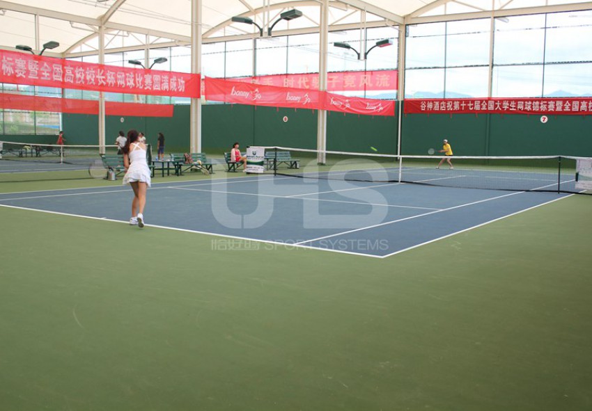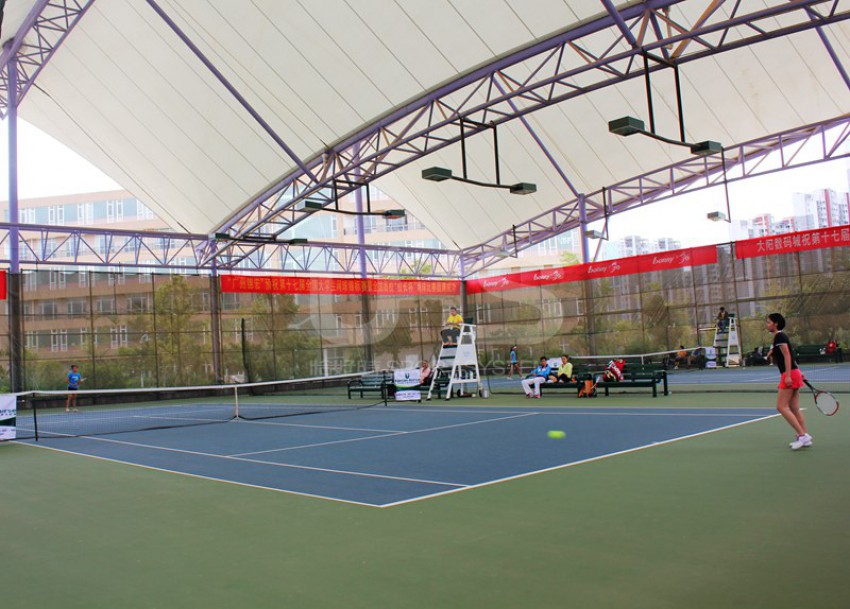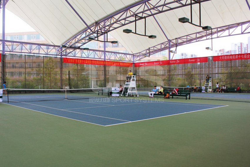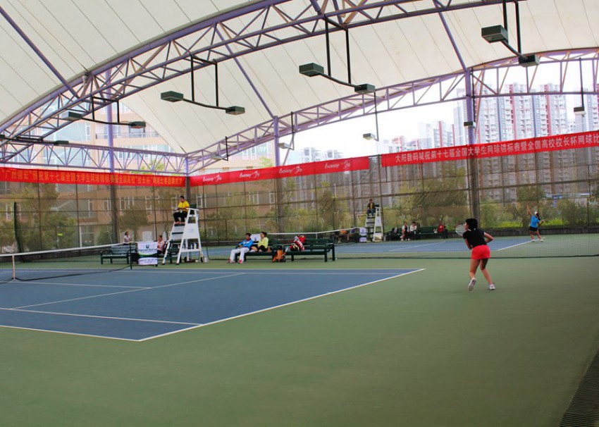 昆明理工大学创建于1954年,位于春城昆明五华区建设路235号。是云南省著名的学府。项目位于校区内的膜结构半封闭室内网球场,共建有7片室内网球场,全系产品为恰好时制造,包括裁判椅、休息椅、球网球柱、室内隔离软网等。